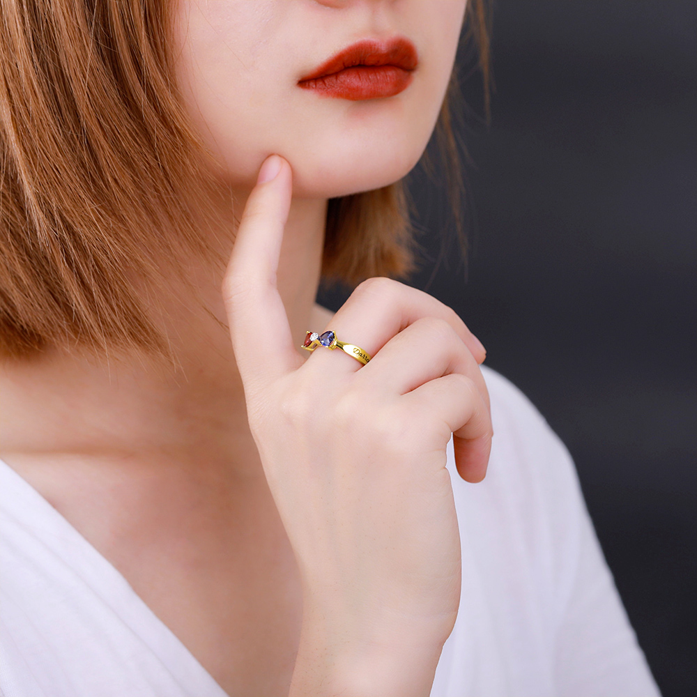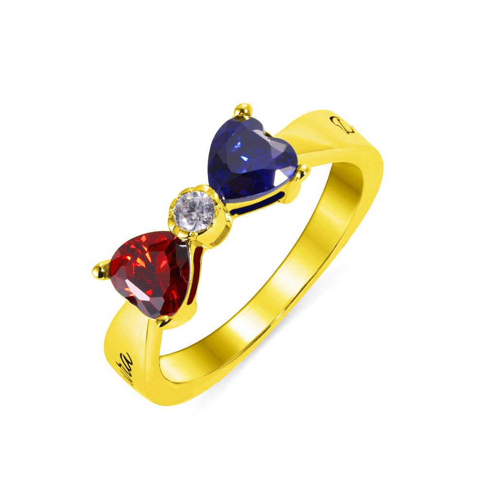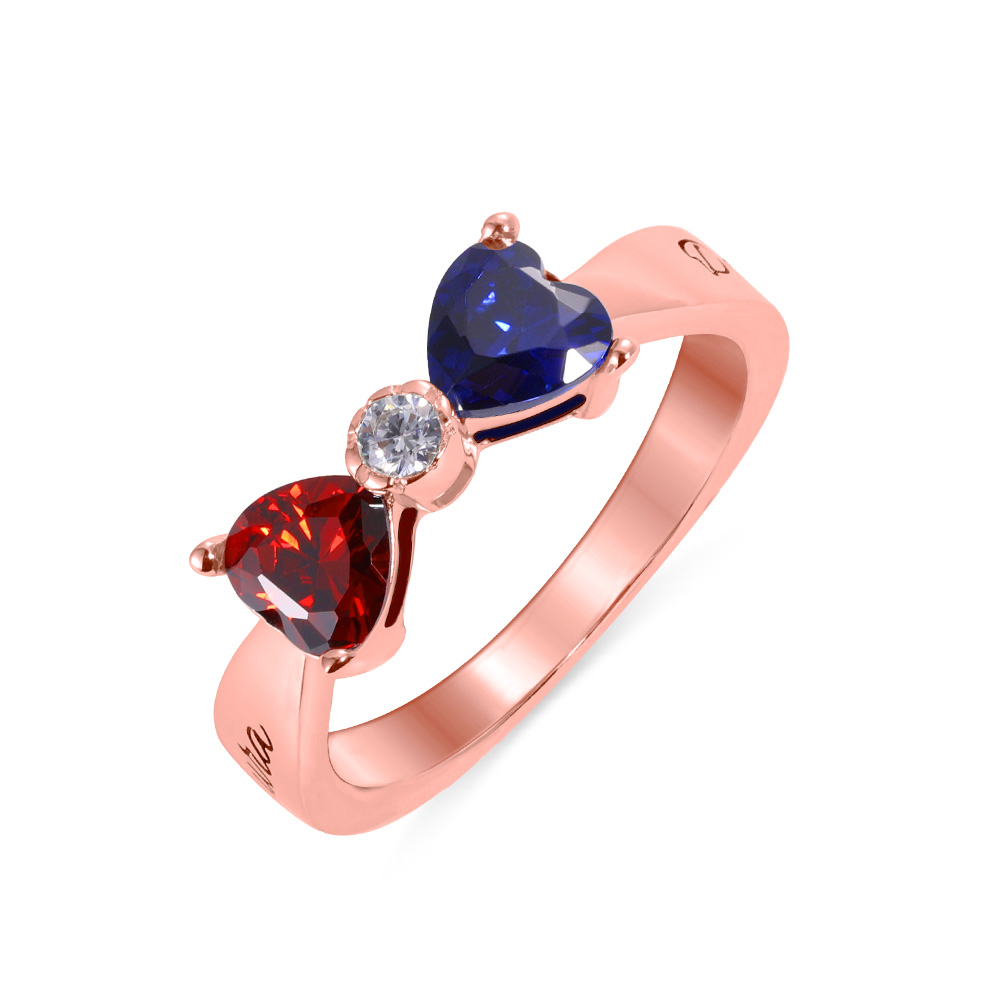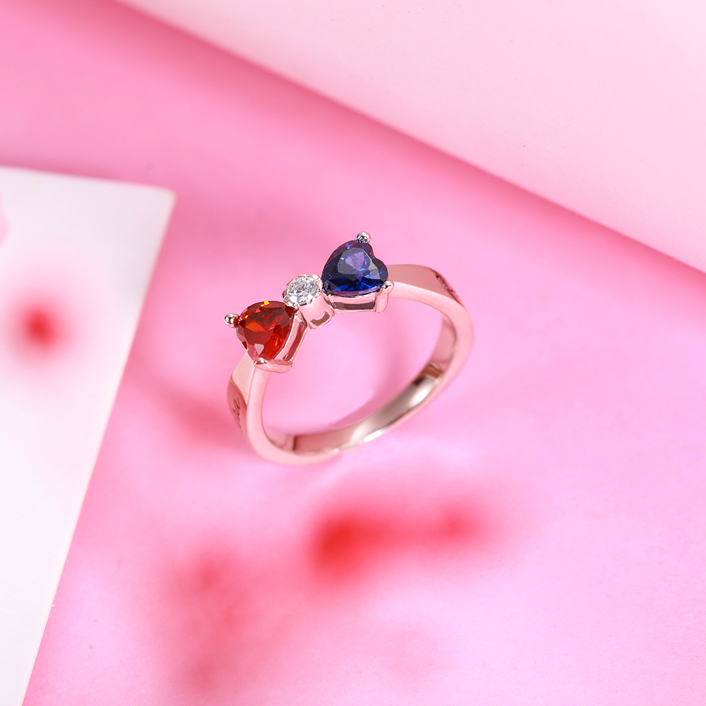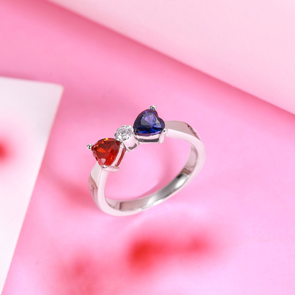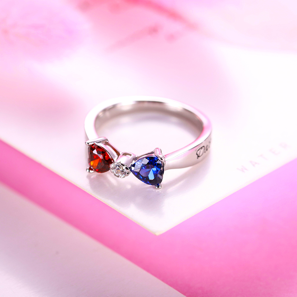 Custom Heart Birthstone Bow Couples Names Ring Sterling Silver
